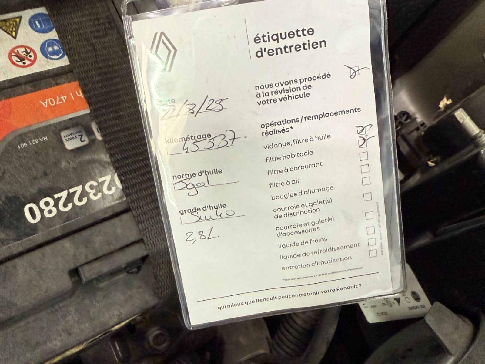 - Carnet d'entretien : Présent