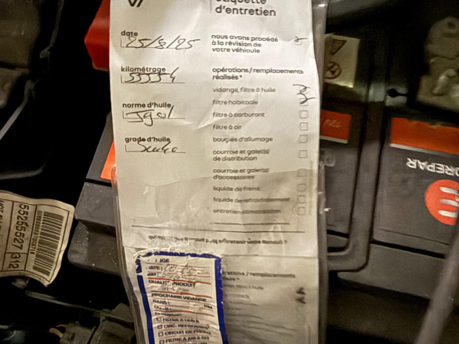 - Carnet d'entretien : Présent